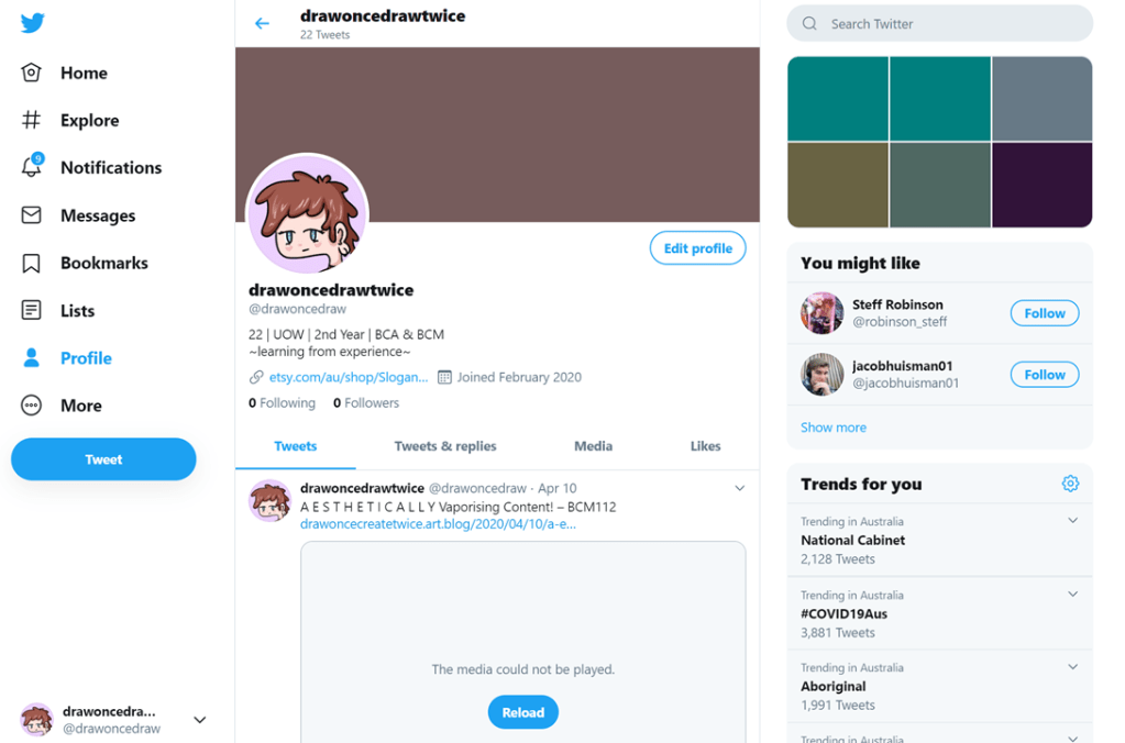 I’ve had a rough time with the progression of my Digital Artifact, however I have been able to witness the struggles that small business may face in the real world. Despite endless efforts to try and get my twitter account back in the past few weeks, most not even mentioned in this video due to time restraints, I am still unable to access it.