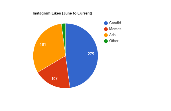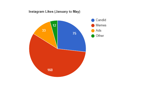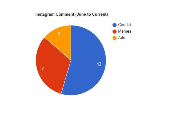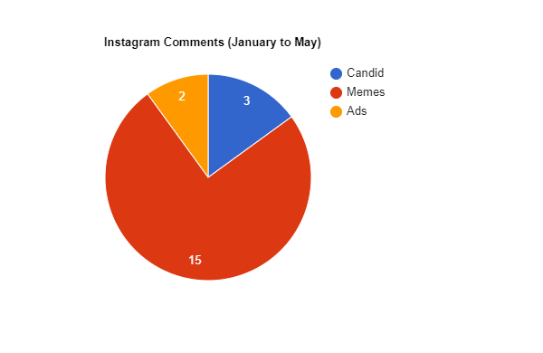 I have arranged these stats into easier to read graphs for convenience (and so you all don’t have to read my terrible hand writing. These are the amount of likes and comments we had received in the first half of this year, divided into different post styles: